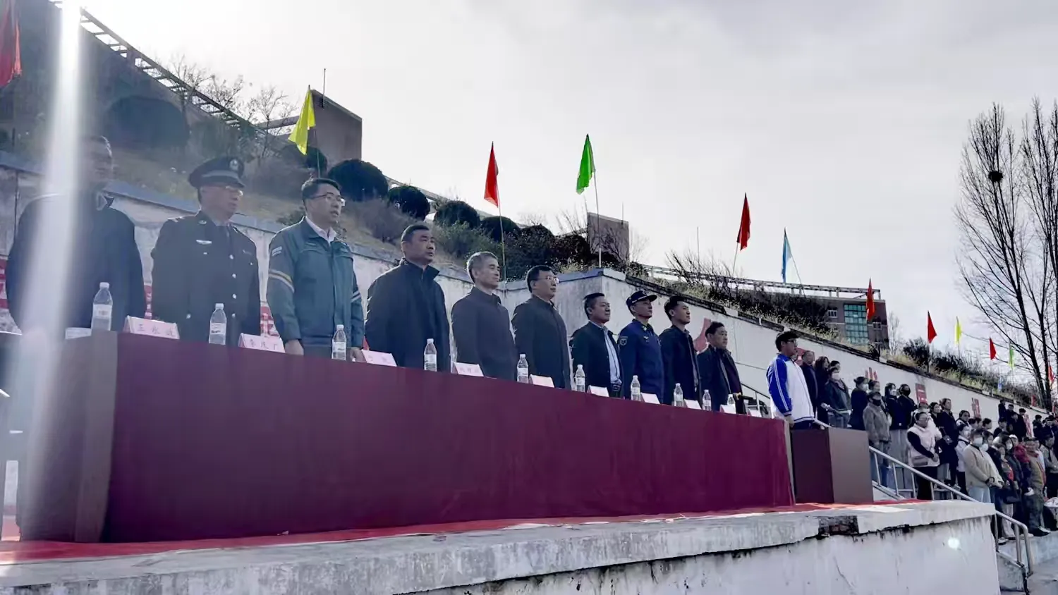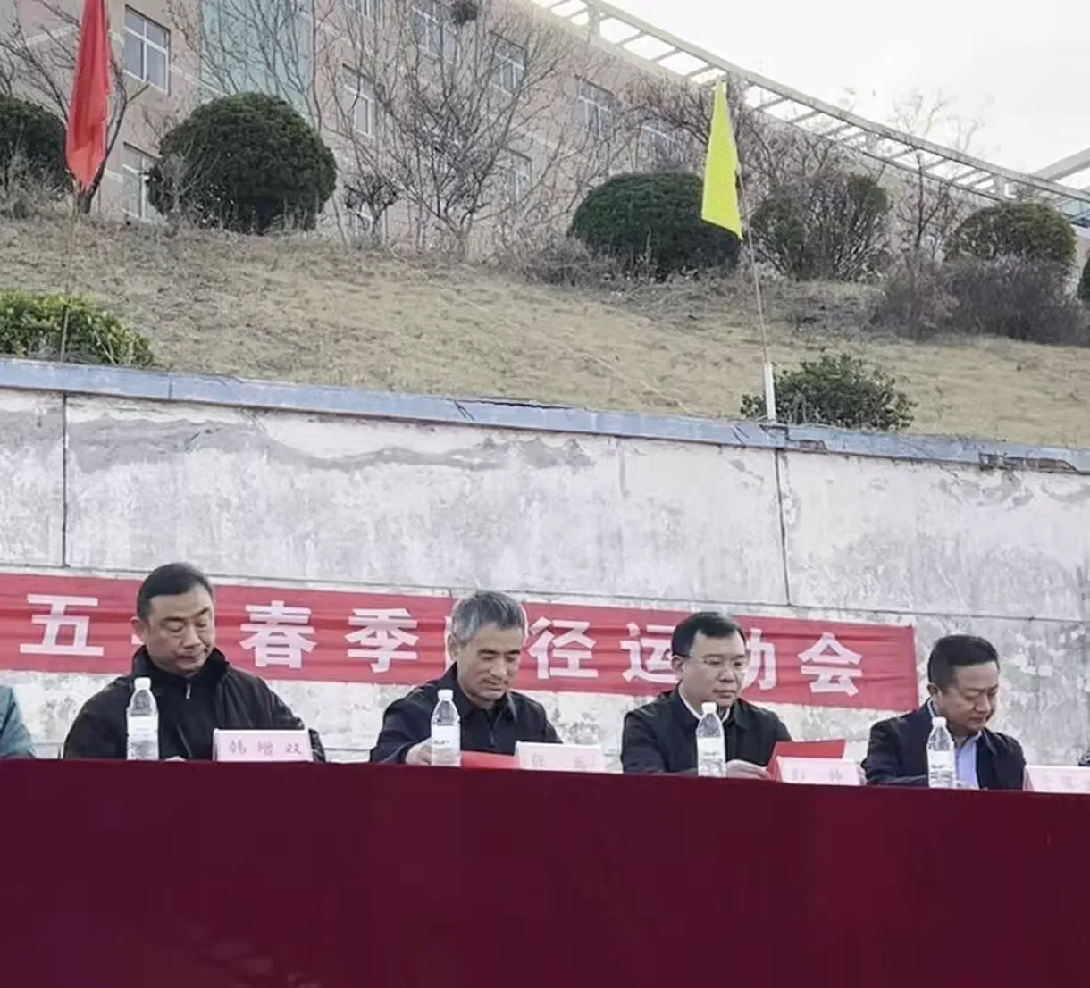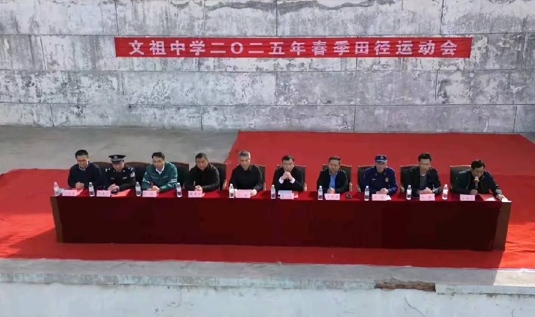 出席章丘区文祖中学春季田径运动会的嘉宾有:文祖街道分管教育工作的人大主任张兵主任,文祖街道人民武装部部长彭帅部长,教体局体卫艺科科长韩增双科长,文祖供电站于凯站长,章丘区森林消防中队付国队长,文祖派出所李庆广法治副校长,以及关心支持文祖教育的企业负责人和家委会成员。一切准备就绪后,文祖中学王恒军主任宣布运动会开幕式正式开始。