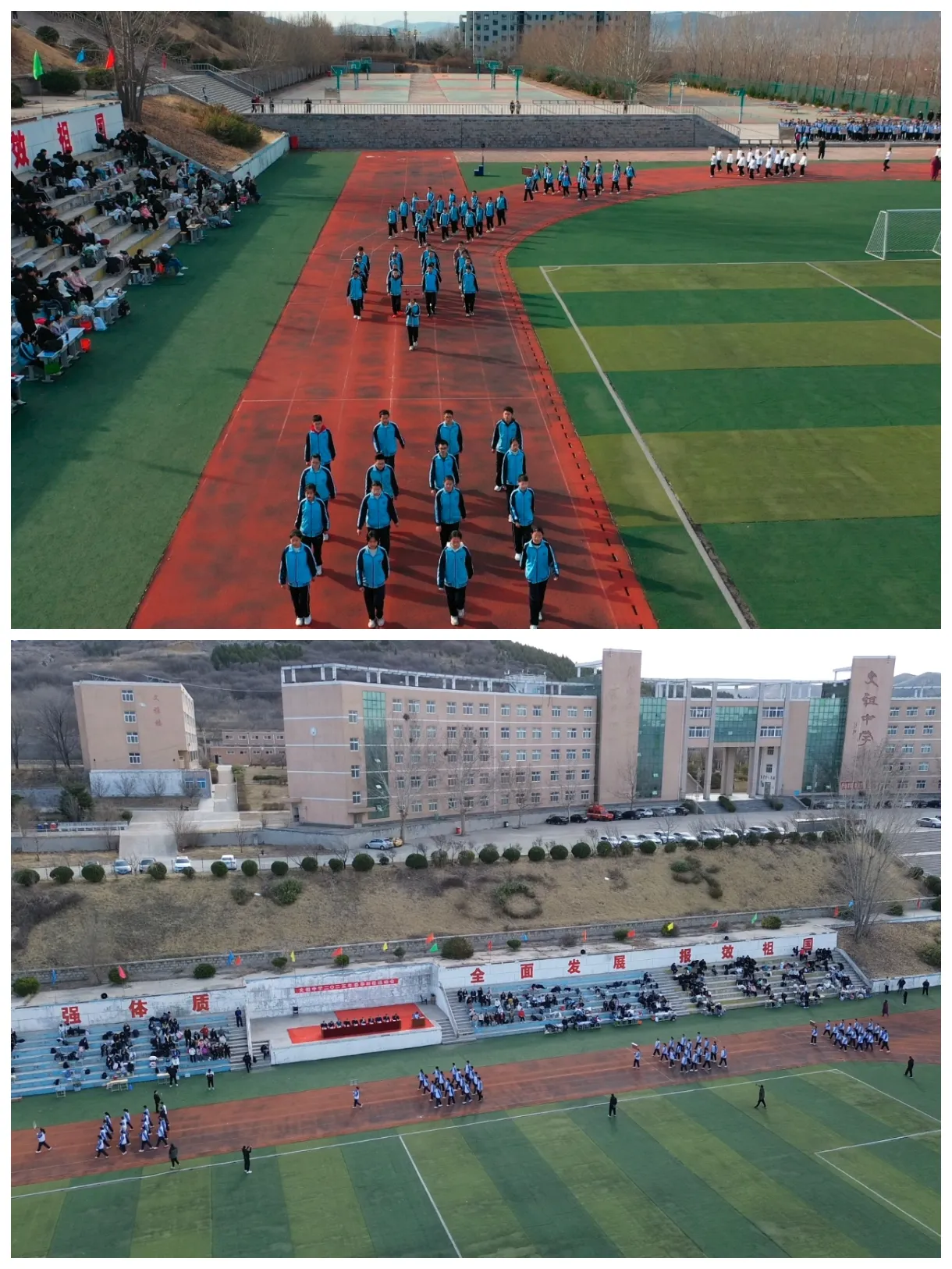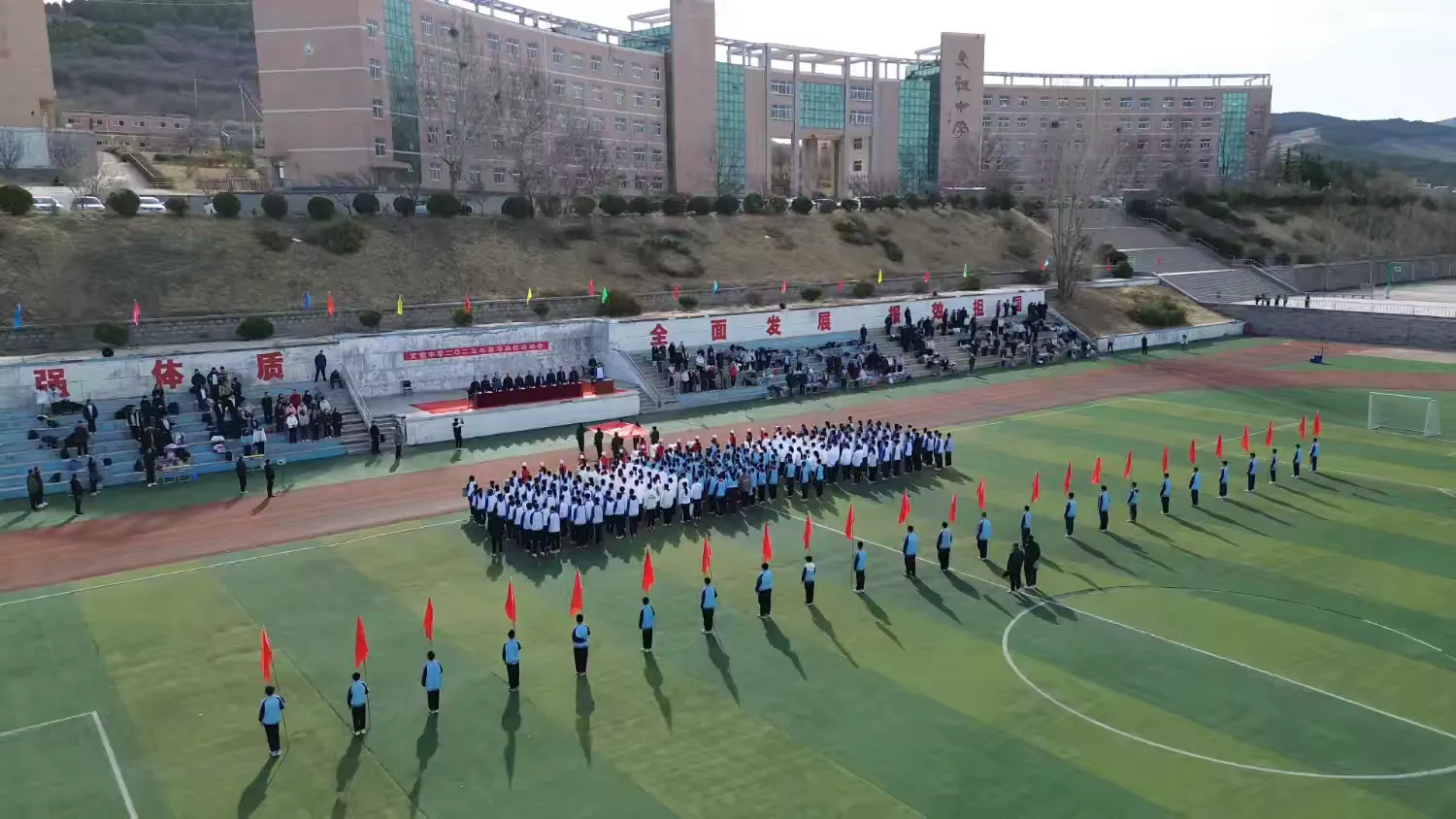为了进一步推动阳光体育活动的广泛开展,培养学生良好的体育锻炼习惯,增强全体学生体质,创设文明、和谐的校园文化生活,2025年3月14日,章丘区文祖中学全体师生相聚运动场,开展了以“运动燃青春,拼搏筑梦想”为主题的春季田径运动会,共同开启了这场青春与运动的盛宴。