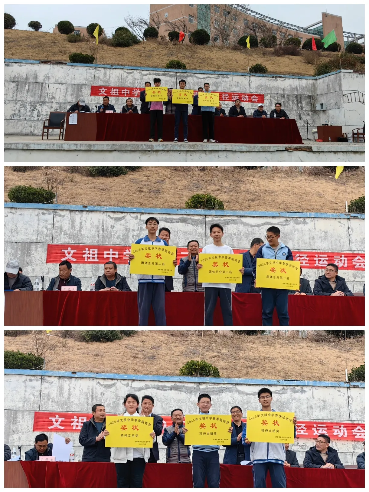 人生因梦想而闪耀,青春因拼搏而精彩,文祖中学2025年春季运动会圆满落下帷幕。首先,于保生校长致闭幕词,向在比赛中取得优异成绩的代表队和同学表示热烈的祝贺,向在比赛中辛苦劳动的组织人员、裁判员表示衷心的感谢,希望同学们能把体育精神带入生活和学习中。随后,学校领导为获奖运动员和班级颁奖。