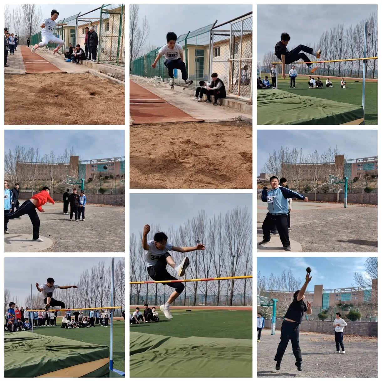 跳高、跳远、实心球,每一片场地都是青春热血的画面,正是力量与美的融合。看,在快速地助跑之后,屏息一搏,纵身一跃,是青春最美的体现。助跑、飞跃、落地。沙地之上,他们拼尽全力,奋力一跳,跳出了自己的决心。